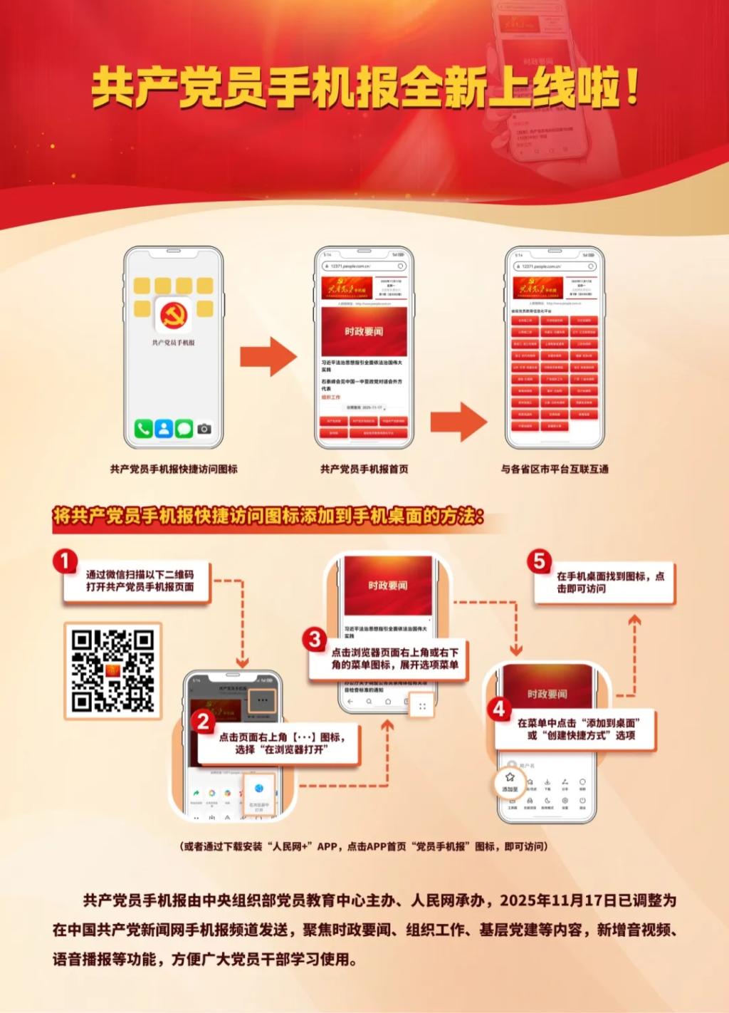 为更好满足基层党组织和广大党员的学习需求,中央组织部党员教育中心主办、人民日报社人民网承办的共产党员手机报,将彩信发送方式调整为在中国共产党新闻网开设手机报频道发送。