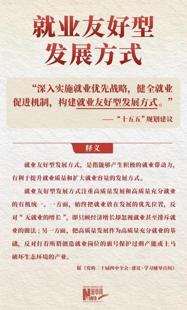 五是完善就业影响评估和监测预警。有效落实在重大政策制定、重大项目确定、重大生产力布局时同步开展岗位创造、失业风险评估,为科学决策提供依据。密切关注外部环境变化和人工智能等新技术发展对就业的影响,有序推进相关行业就业替代和转换,防止其负面效应短期内集中释放,确保就业形势始终稳定。(据《党的二十届四中全会<建议>学习辅导百问》)