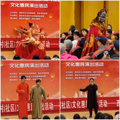 当天,西安话剧院演出团队经过精心筹备,为大家奉献了一场涵盖舞蹈、戏曲、相声、川剧绝活等多元艺术形式的文艺节目。舞蹈《凤鸣朝阳》以恢弘大气的舞姿点燃了现场氛围;女声秦腔唱段《三击掌》、《红灯记》选段韵味醇厚,经典唱腔尽显秦腔艺术魅力;相声《斗嘴》以幽默台词与生动表演,逗得台下观众笑声不断;川剧《脸谱》瞬间脸变尽显非遗技艺精髓,让人称奇;古典舞《书简舞》彰显文化底蕴,魔术表演《无中生有》悬念迭起。尤其让大家欣慰的是我校校友李静带来的三首民歌连唱赢得满堂喝彩。充满幸福感的集体舞《灯火里的中国》为整场演出画上了圆满句号。整场演出如暖炉般包裹欢乐与温馨。