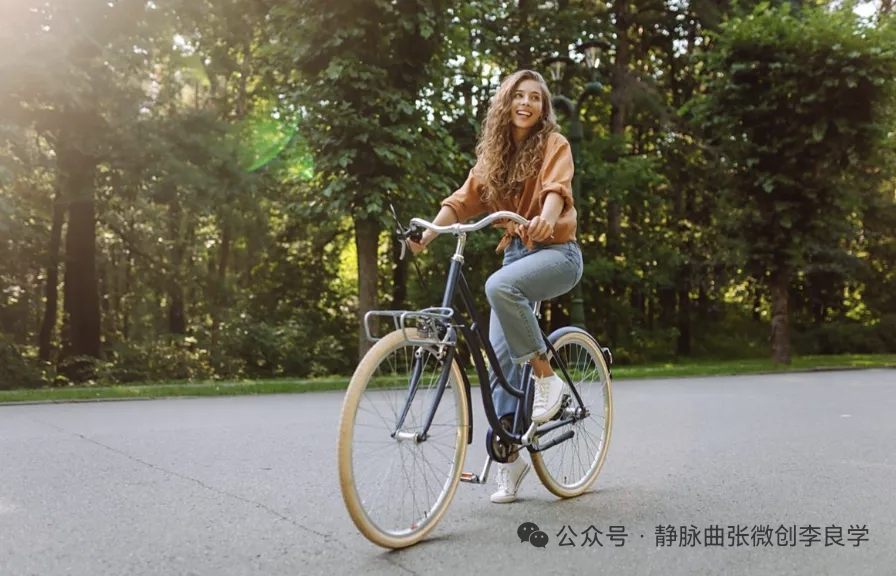 骑自行车时,小腿肌肉随蹬踏规律收缩,持续促血液回流;正确姿势不额外增加静脉压力,对关节冲击小。担心户外安全,可用家用骑行机,自主控制速度和时长,效果一致。