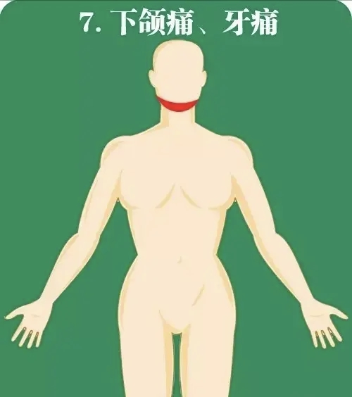 可能表现为颈部、下颌疼痛,甚至是牙齿疼痛,尤其是与运动相关的颈部、下颌、牙齿疼痛,即这些部位静止状态并不痛,但是走路就会疼痛,或是疼痛不止,并伴有头晕冷汗等症状时,那么很有可能是急性心梗。