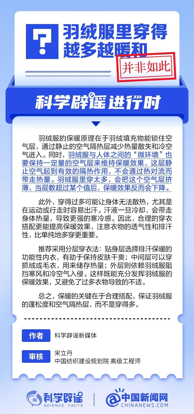 【科学辟谣】羽绒服里穿得越多,越暖和?