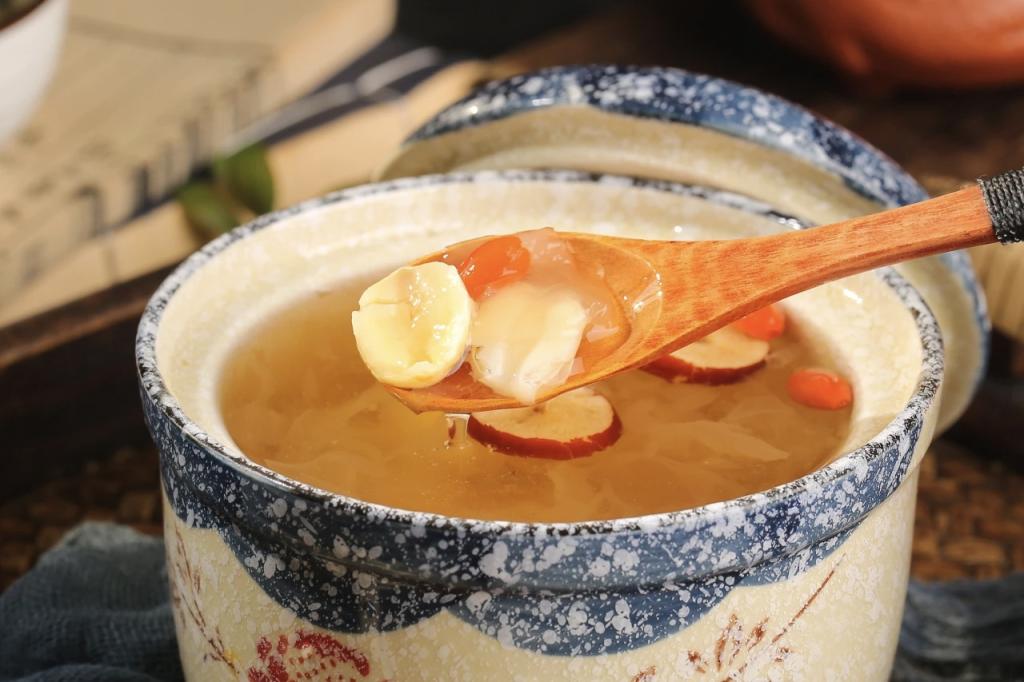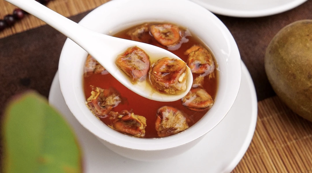 把罗汉果、红枣等材料和排骨或鸡肉等肉类一起炖煮吃,甜美解腻。