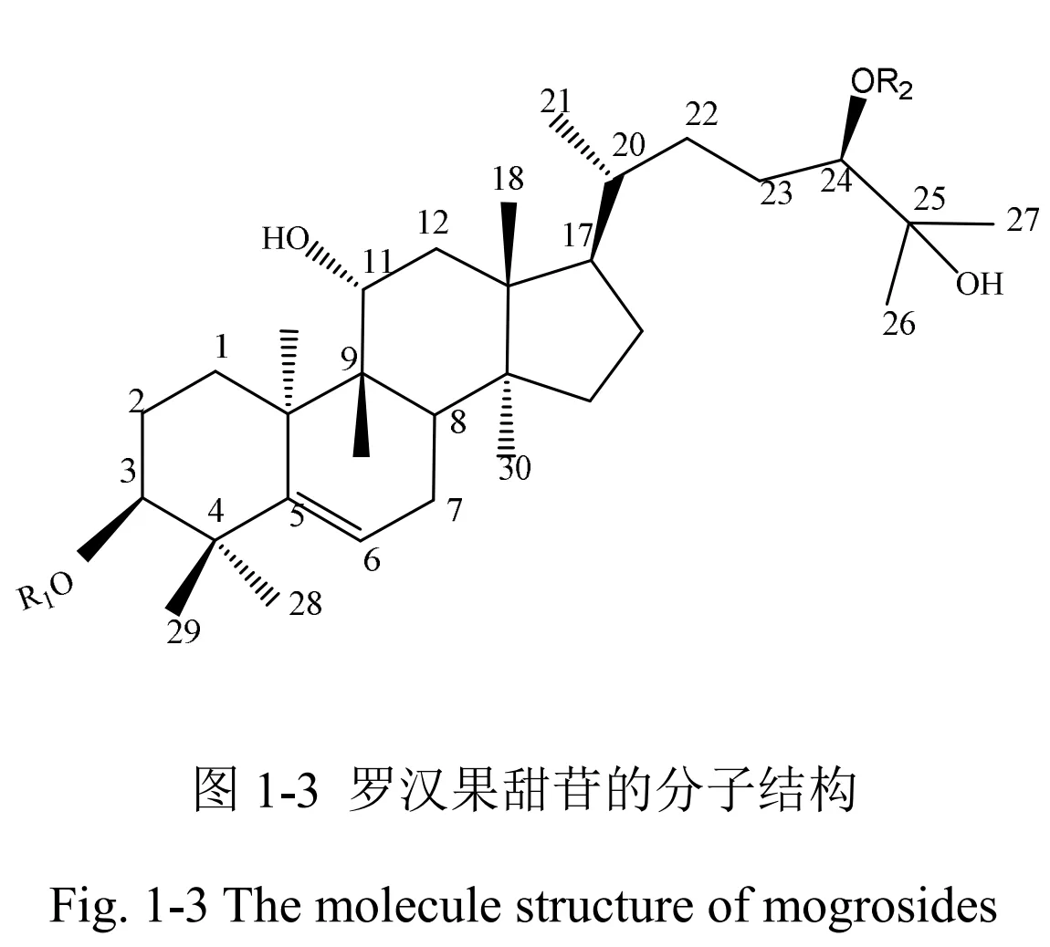 罗汉果甜苷是罗汉果中的一类化合物,具体来说结构上属于三萜糖苷,目前发现了十几种,它们突出的特点就是低热量+高甜度。