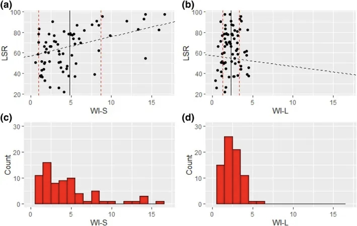 参考资料 [3]:仰卧位觉醒指数 (WI-S) 和侧卧位觉醒指数 (WI-L) 与侧卧位比率 (LSR) 的关系存在差异,大多数参与者的 WI-L 或 WI-S 值在每小时 1.5-2.5 次觉醒之间;然而,WI-S 的分布更广,标准差更大。