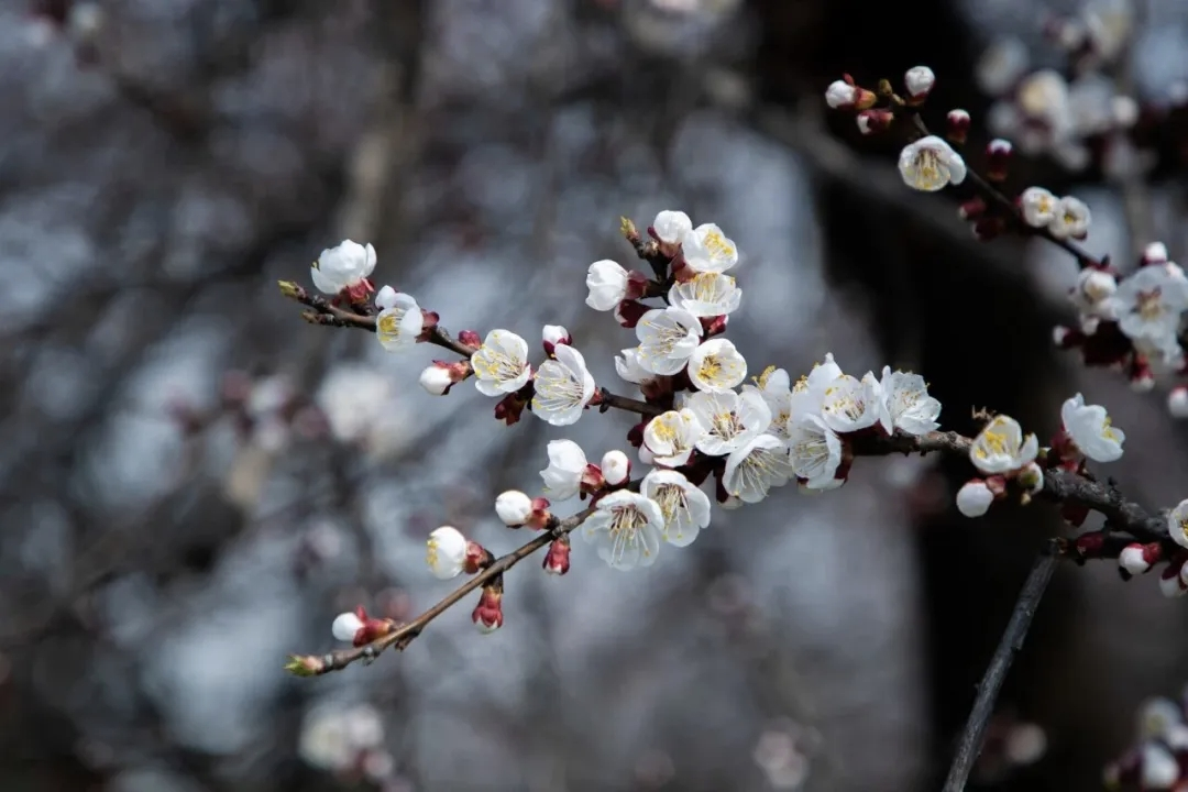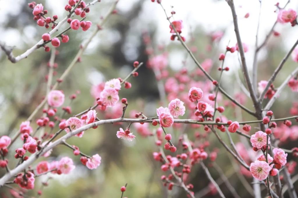 三月的大明宫繁花似锦,丹凤门广场上,玉兰肆意绽放,白似雪、粉如霞,侧逆光随手一拍,皆是壁纸级画面,太液池东南角红梅缀枝,老枝横斜,艳色动人,连蜜蜂都沉醉其中。