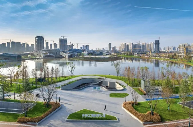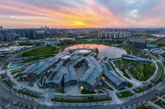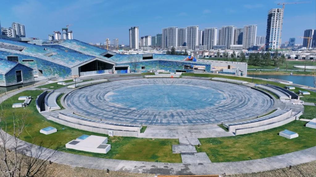 核心景观“西安最圆水域”瞳湖,如大地之眼倒映着王澍设计的西安大剧院,清风拂过尽显“天空之镜”质感,清晨或蓝调时刻,拍摄氛围感拉满。