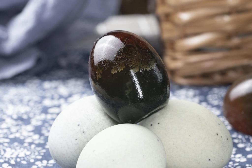 因此在挑选皮蛋时,大家的最佳选择是带有少量黑色小斑点的皮蛋。