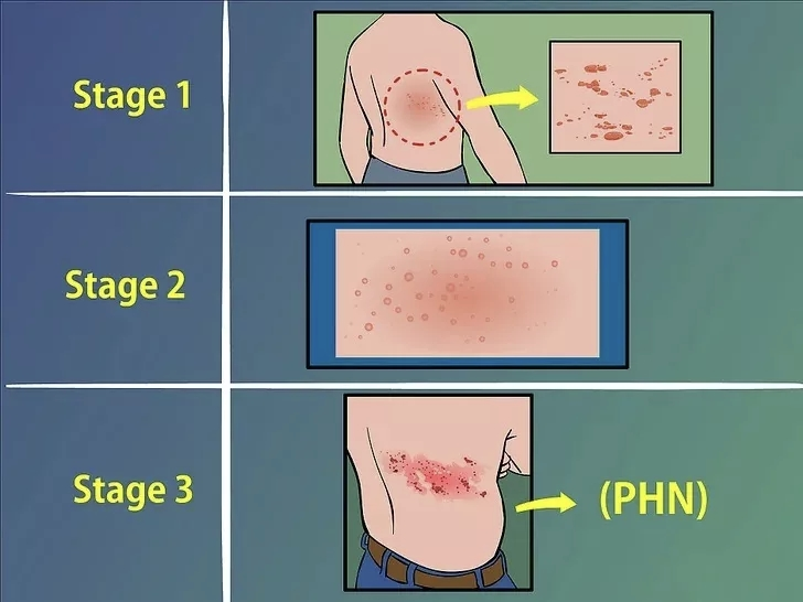 带状疱疹的症状发展有明显的阶段性: