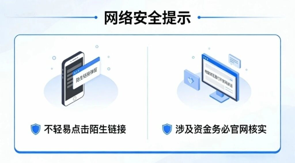 ✅ 点击链接前请检查这三点:🔍 域名是否正确;🔒网址是否加密(HTTPS);🔄 有无奇怪跳转。