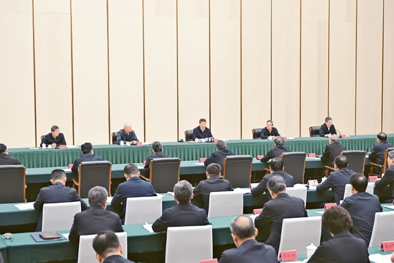 2026年3月23日,中共中央总书记、国家主席、中央军委主席习近平在河北雄安新区考察,并主持召开深入推进雄安新区高质量建设和发展座谈会。这是23日下午,习近平主持召开深入推进雄安新区高质量建设和发展座谈会并发表重要讲话。 新华社记者 谢环驰/摄