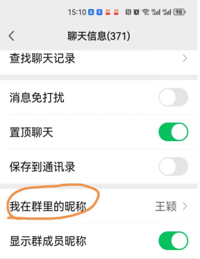 第二步:上划页面找到“我在群里的昵称”,并点击。